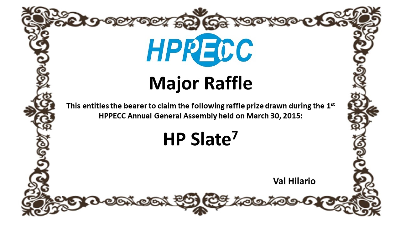 Launch the HPP Vacation Home in Tagaytay with online reservation system. Launched the HPP Mobile App for Android phones. Launched the Online Membership Application Form. Launched of Online Petty Cash Loan Application. HPPECC receives CDA-MEO Gawad Parangal Special Recognition Award. HPPECC receives Taguig Coop Spirit Award for "Significant Increase in Networth". Cash Gifts released to members as part of member benefit (P200/year tenure). Tools for Schools Programs Launch of HPP Cafe for catering services to members. Launched the LEARN Session aimed at helping members "Learn to EARN" through livelihood seminars and workshops. Launched Member Ads where members can post ads for free. |